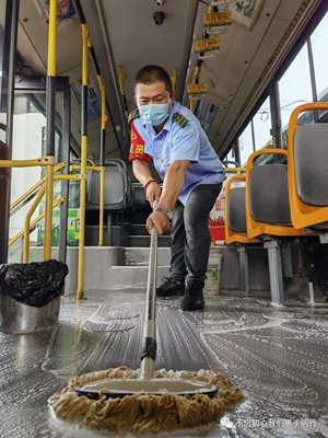 唐山公交五公司班子成員下路隊、上公交、對每一輛車的車容車貌、衛(wèi)生情況開展檢查,發(fā)現(xiàn)問題后隨手拿起抹布對保潔人員、司機做起清潔車廂的示范,三個路隊的路隊長更是利用所有業(yè)余時間對車輛進行大清掃。為了讓車輛清掃活動開展的更加有成效,鄭斌經(jīng)理要求每隊提出一個衛(wèi)生口號,于是“人手一塊小抹布” 、“安全人人管 衛(wèi)生人人干”、“人人做整理 場站有條理 全員做清掃 車廂更美好”等口號,夾雜著汗水伴隨著職工大清掃的熱情,讓車輛衛(wèi)生清理達到了“潔”的效果。截止到目前為止,五公司完成現(xiàn)有202輛公交車、7個公交場站、9個發(fā)車點的衛(wèi)生百分百清理與復查整改。值得一提的是,屈莊公交車場在環(huán)境雜亂、設施設備不足的情況下,依然在總公司“四項”重點工作推進檢查中得到督導組的認可和表揚。三隊的管理人員更是在開展衛(wèi)生大清掃活動中起到了帶頭作用,還創(chuàng)造了許多衛(wèi)生清掃“小竅門”,比如馬翯書記用自行購買的吸塵器清理駕駛室內(nèi)的腳踏板,防止了用水沖洗造成的電路短路不安全隱患,由李旺隊長發(fā)現(xiàn)并在全公司推廣使用的海綿擦代替鋼絲球擦洗,防止了過度清潔對車身造成的損壞。
