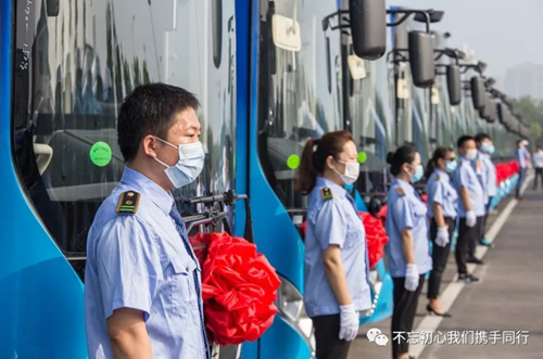 8月11日上午,唐山市新能源公交車上線運(yùn)營(yíng)啟動(dòng)儀式在唐山站公交樞紐舉行,市委常委、常務(wù)副市長(zhǎng)付振波,市政府副秘書長(zhǎng)、“一港雙城”辦主任任艾泉,市人大城環(huán)委主任王玉升,市城管執(zhí)法局黨組書記、局長(zhǎng)冀桂梅,市政協(xié)提案委辦公室主任劉貴臣,市交通運(yùn)輸局副局長(zhǎng)李東興,市城管執(zhí)法局四級(jí)調(diào)研員石中波,總公司總經(jīng)理劉東占、黨委書記夏保良出席啟動(dòng)儀式。在啟動(dòng)儀式上,市城管執(zhí)法局黨組書記、局長(zhǎng)冀桂梅同志致詞,總結(jié)概括近年來(lái)唐山公交事業(yè)發(fā)展取得成績(jī),全面介紹了純電動(dòng)公交車更新?lián)Q代情況,市委常委、常務(wù)副市長(zhǎng)付振波同志宣布2020年唐山市新能源公交車正式啟用上線運(yùn)營(yíng)。