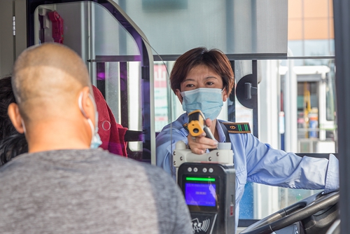 嚴格落實常態(tài)化疫情防控工作舉措,運營車輛堅持消毒通風,重點對車廂地板、司機方向盤、車窗開關、座椅扶手、車內欄桿、刷卡機、投幣口等部位進行消殺,加強通風換氣,保持空氣流通。公交司乘人員佩戴口罩上崗,同時提醒乘客佩戴口罩乘車,共同打造安全健康的出行環(huán)境,讓乘客安心上車。