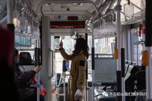 我察覺大家逐漸習(xí)慣乘公交戴口罩、上車自動(dòng)伸手讓駕駛員檢測(cè)體溫、主動(dòng)掃碼,但也難免出現(xiàn)大意的時(shí)候。有次一個(gè)小伙子在車上可能感覺悶了,隨手拉下口罩,被我洞察敏銳的搭檔從后視鏡一眼瞥見,馬上提醒他戴好口罩。