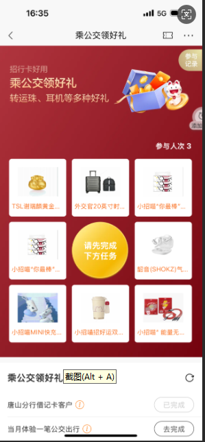 參與路徑:招商銀行App-首頁(yè)-城市服務(wù)(唐山專區(qū))-公交出行